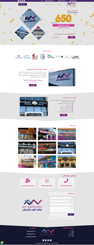 وكالة عالم الفن للخدمات الإعلانية المتكاملة هي إحدى الوكالات الرائدة في مجال خدمات الإعلان والتسويق، تصميم وتطوير المواقع الإلكترونية والمتاجر الإلكترونية وتطبيقات الجوال، إدارة وسائل التواصل الاجتماعي، إعلانات Google Ads، تحسين محركات البحث (SEO)، إنشاء هويات العلامات التجارية ودراسات الجدوى للشركات والمؤسسات على أعلى مستوى من الاحترافية. والتي تناسب عملائنا وبأسعار منافسة مع فريق عمل متخصص ومتكامل تحت إدارة خبرة واسعة في مجال الخدمات الإعلانية والتسويقية.